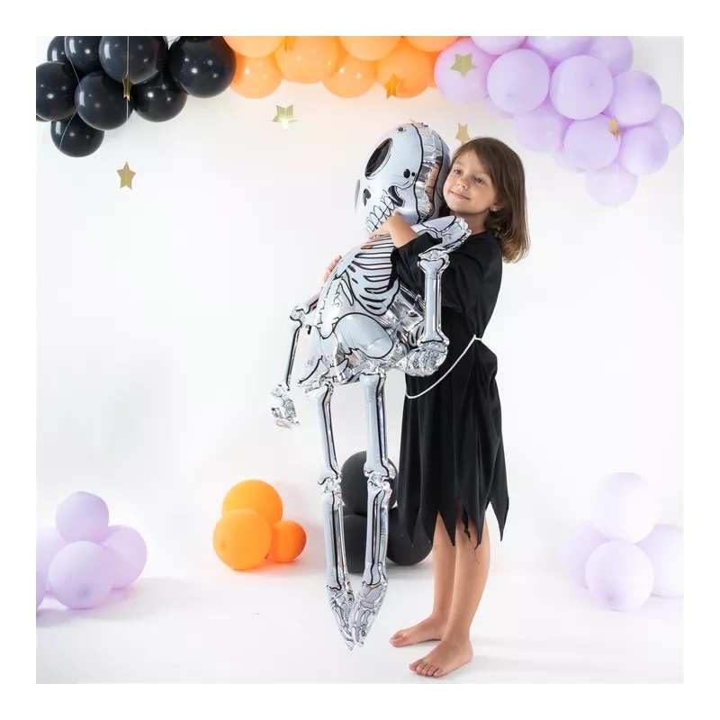 Bílý fóliový balónek ve tvaru Kostlivce bude skvělou dekorací na halloweenské párty.