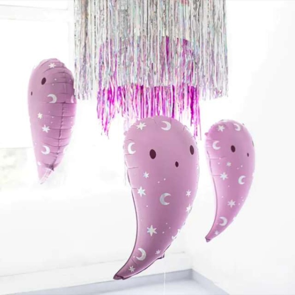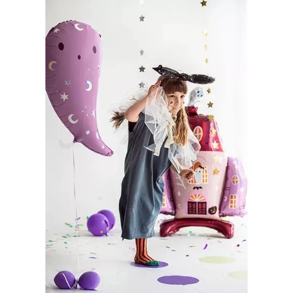 Fóliový balónek ve tvaru Ducha s holografickým potiskem měsíců a hvězd. Takový balónek se jistě zalíbí každému dítěti a je originální dekorací například během Halloweenu nebo jiných tematických večírků.