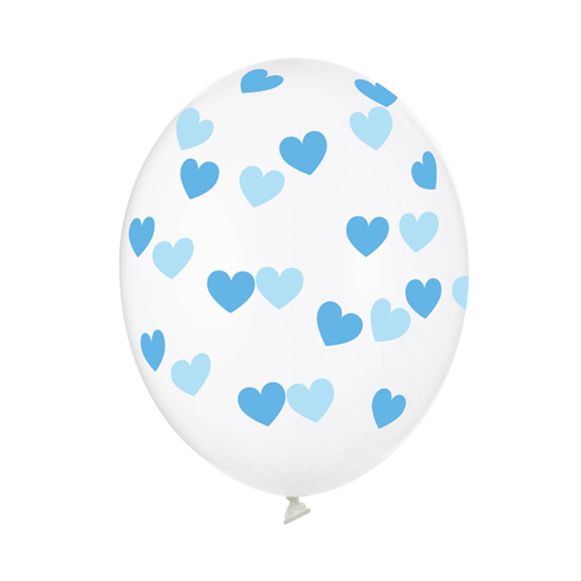 Latexový transparentní balónek s celoplošným potiskem modrých srdíček