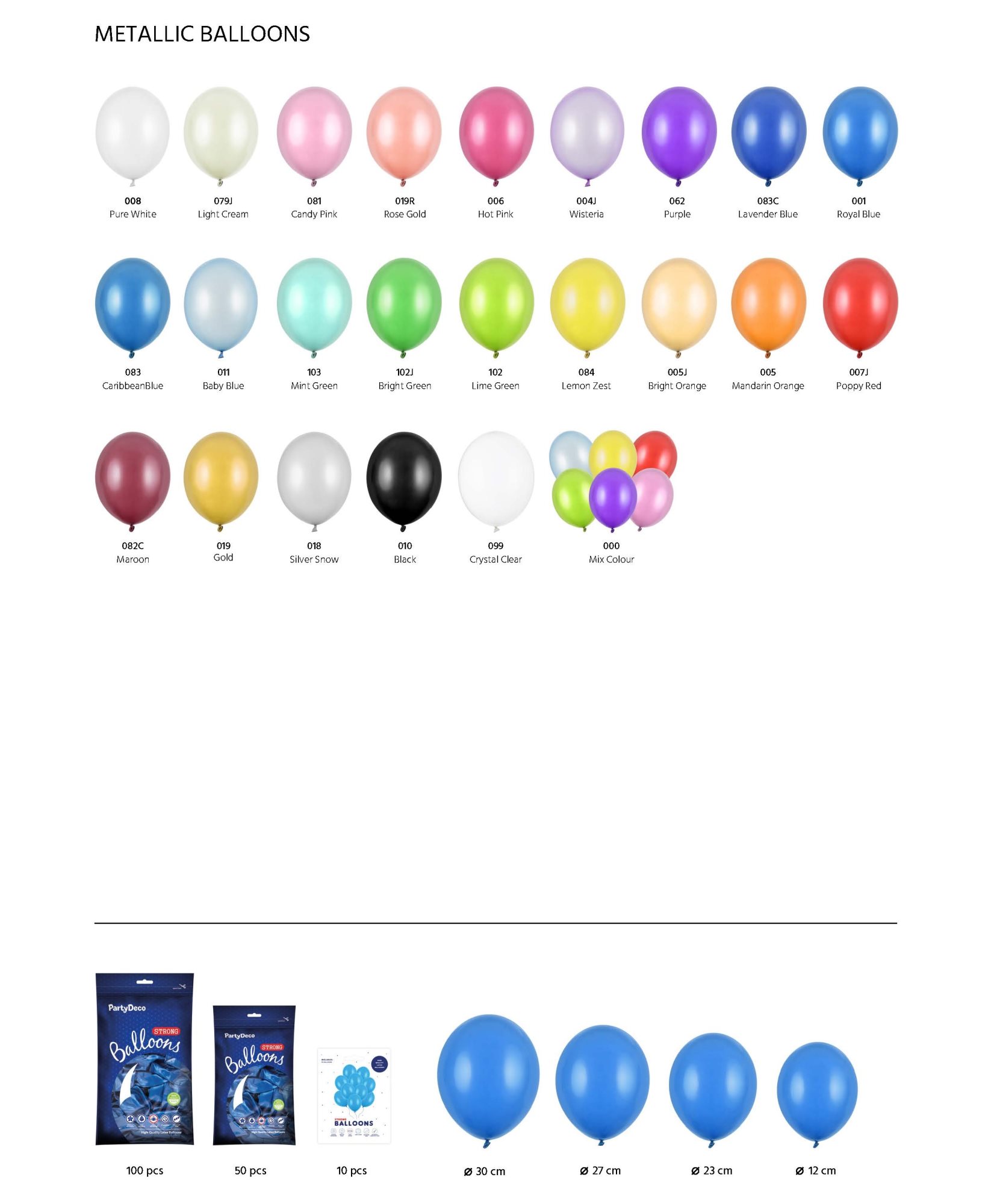 TIP: Velikost 23 cm je uváděna jako měrná jednotka pro kapacitu balónkových helií pro domácí použití. Tzn. U lahve s popisem na 30 latexových balónků, nafouknete heliem 30 balónků této velikosti. V nabídce máme velké alternativy barev těchto balónků