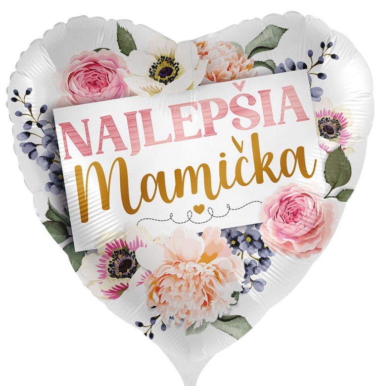 Fóliový balónek ve tvaru srdíčka s krásným potiskem květin a slovenským nápisem Najlepšia mamička