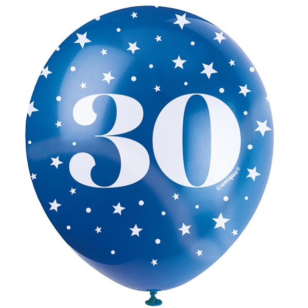 | Latexové balónky v mixu barev s číslem 30 a hvězdičkami Velikost: 30 cm V balení naleznete 5 ks Barvy: modrá, … |