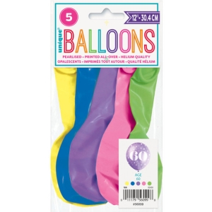 | Latexové balónky v mixu barev s číslem 60 a hvězdičkami Velikost: 30 cm V balení naleznete 5 ks Barvy: modrá, … |