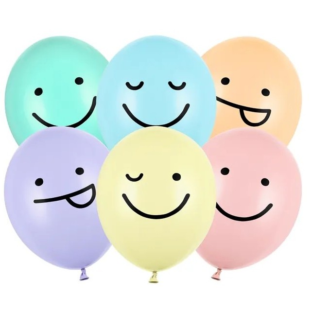 Balónky jsou v mixu barev: (1 pastelový světle mintový s černým potiskem, 1 pastelový tmavě mintový s černým potiskem, 1 pastelový světle růžový s černým potiskem, 1 pastelový broskvový s černým potiskem, 1 pastelový žlutý s černým potiskem, 1 pastelový světle modrý s černým potiskem)