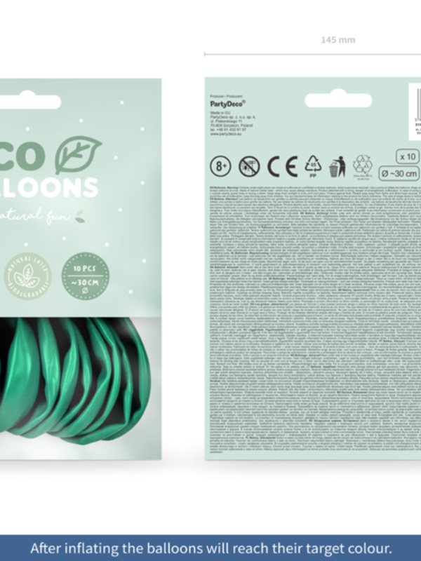 | Kvalitní Eco balónky latexové metalické v barvě tmavé máty Balónky jsou vhodné pro nafukování vzduchem i heliem velikost … |