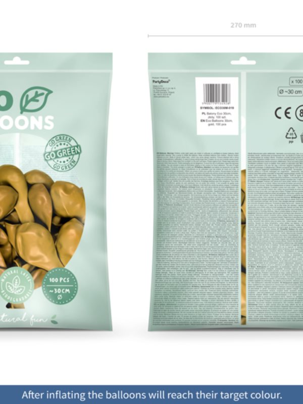 | Kvalitní Eco balónky latexové metalické ve zlaté barvě Balónky jsou vhodné pro nafukování vzduchem i heliem velikost 30 … |