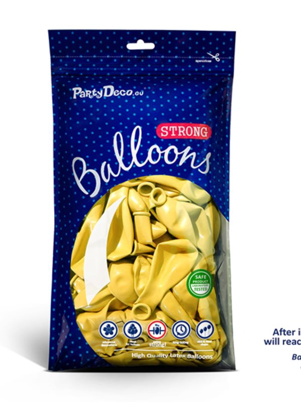 | Silné latexové balónky v metalické citrónové barvě Tyto balónky jsou vhodné pro nafukování vzduchem i … |