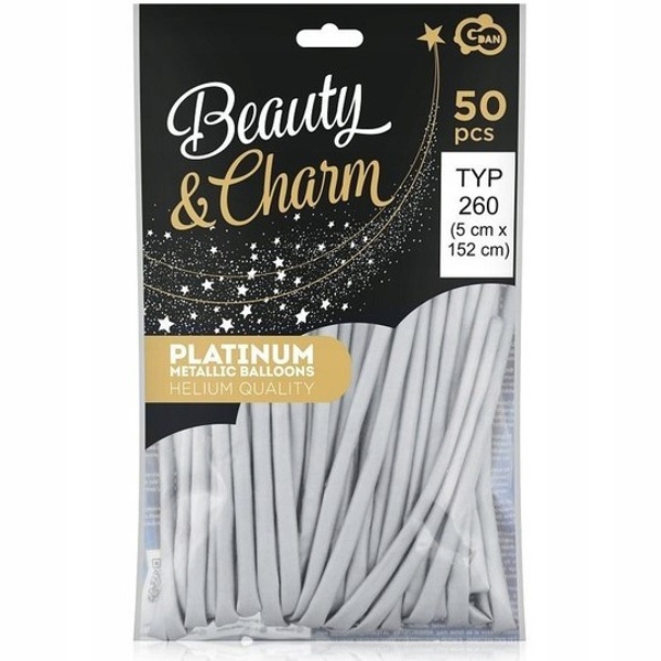 Platinově stříbrné modelovací balónky, ze kterých zvládnete vymodelovat baloková zvířátka i kytičky. Balónky na modelování se lehce pumpují a při otáčení leží dobře v ruce a dlouho udržují svůj tvar.