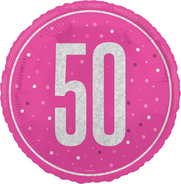 Třpytivý růžový balónek je vhodný nejen jako doplněk výzdoby jubilejních 50.narozenin, ale určitě potěší oslavence také jako dárek.