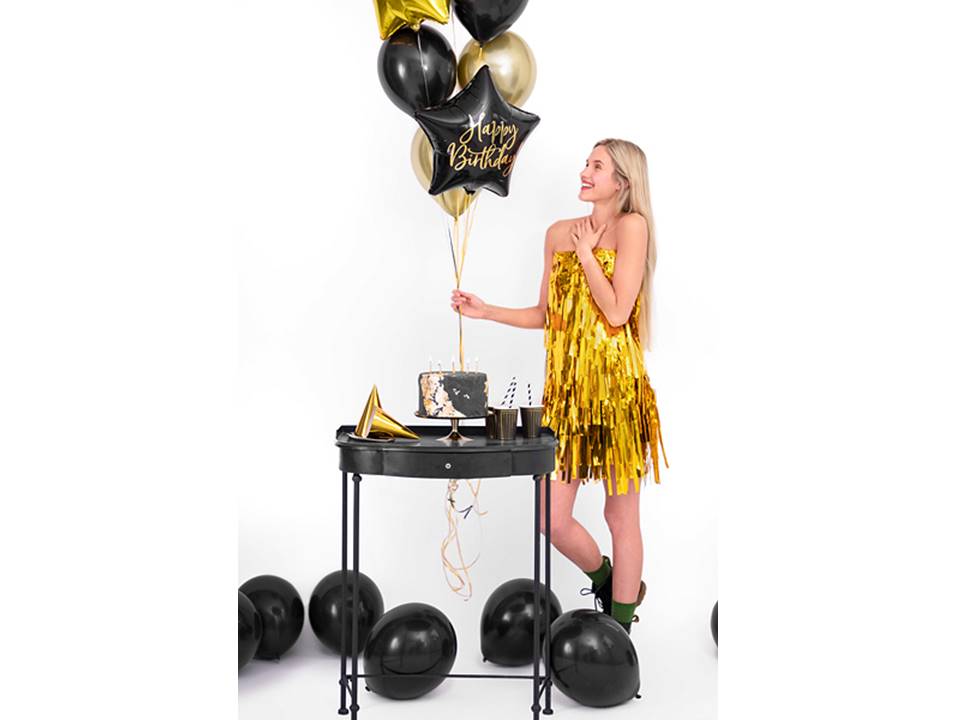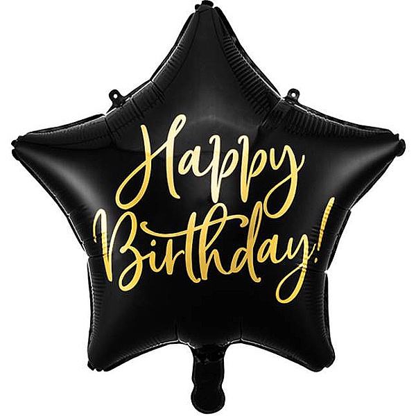 Originální narozeninový balónek - fóliová hvězda černá se zlatým nápisem Happy Birthday.