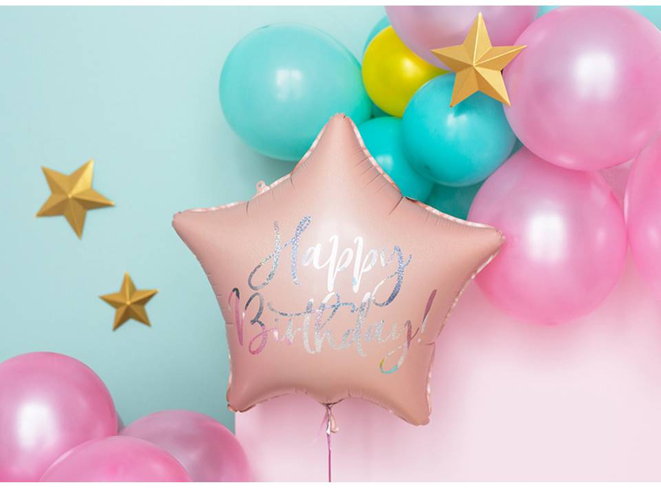MojeParty Balónky a helium Balónky narozeninové Balónek fóliový Hvězda pudrově růžová Happy Birthday 40 cm
