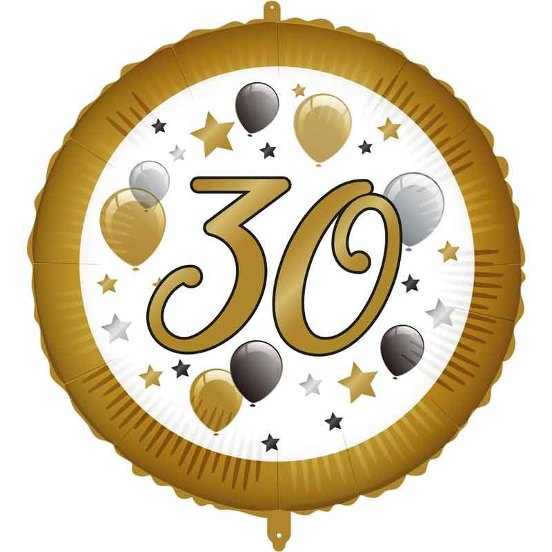 Oslavte jubilejní 30. narozeniny s tímto bílo-zlatým fóliovým balónkem kulatého tvaru a číslem 30.