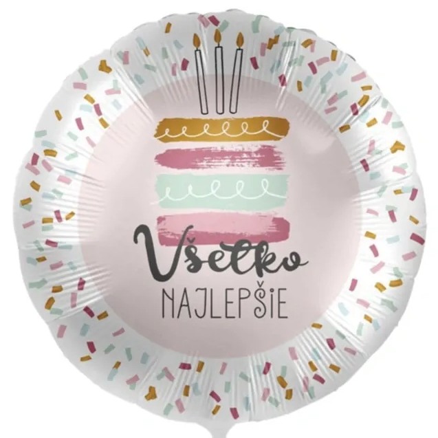 | Fóliový balónek kulatého tvaru se slovenským nápisem Všetko najlepšie Balónek je s oboustranným potiskem a vhodný poro … |