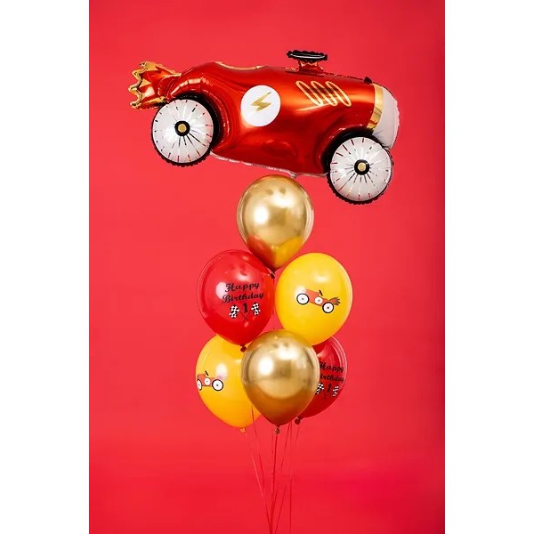 Balónky jsou v mixu a sada obsahuje 2 designy. Vhodný doplněk výzdoby na 1.narozeniny chlapečka, tématickou párty Závodní formule.