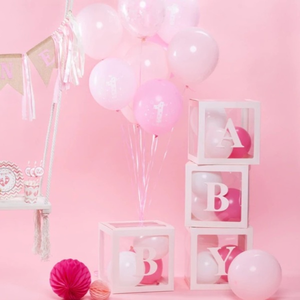 Krásný balónkový buket k výzdobě oslavy 1. narozenin holčičky.