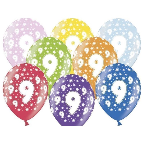 Balonky latexové s číslem 9.narozeniny jsou metalické a nepostradatelným doplňkem narozeninové oslavy.