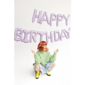 Balónkový nápis Happy Birthday tvoří matné fóliové balónky ve světle fialové barvě