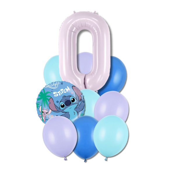Balónkový buket – Stitch a Angel s číslicí „0“, 10 ks