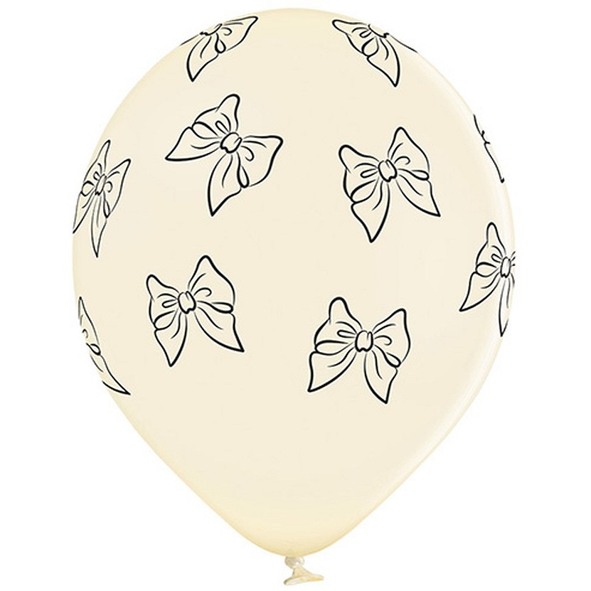 Latexové balónky vanilkové barvy se šedými malými mašličkami