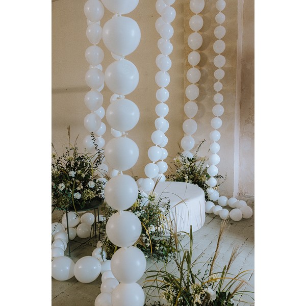 Vytvořte si tu nejhezčí girlandu s těmito dekoratérskými spojovacími balónky v bílé barvě. Tyto balónky mají extra upevňovací spojku, takže je můžete snadno podélně svázat.