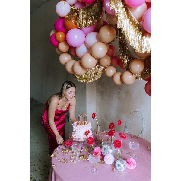 Vytvořte si tu nejhezčí girlandu s těmito dekoratérskými spojovacími balónky ve světle růžové barvě. Tyto balónky mají extra upevňovací spojku, takže je můžete snadno podélně svázat.