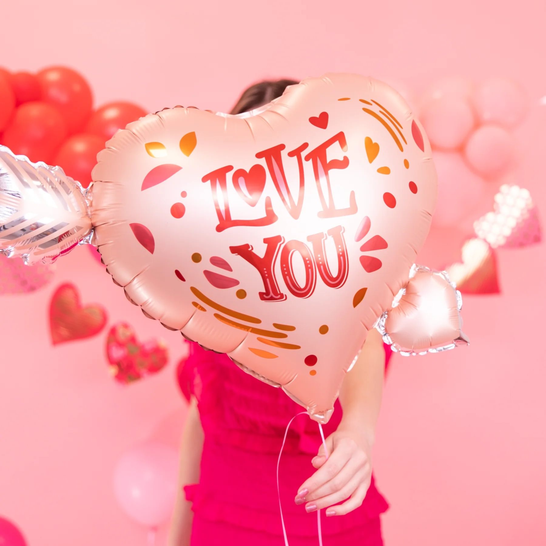 Fóliový balónek Srdce se šipkou a nápisem Love You.