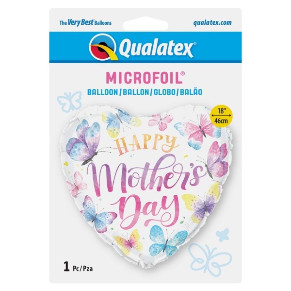 Popřejte své mamince ke Dni matek tímto krásným balónkem ve tvaru srdíčka s barevnými motýlky.