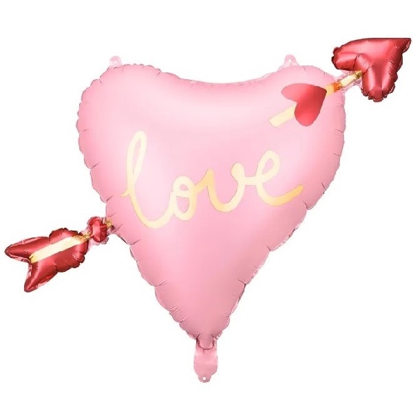 Balónek fóliový Srdce se šipkou a zlatým nápisem Love je ideální pro výzdobu Valentýna, rozlučky se svobodou, výročí, zásnub nebo svatby.