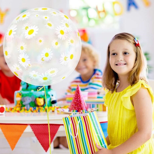 Velký transparentní balónek ve tvaru koule s potiskem Sedmikrásek je skvělá volba pro výzdobu jarní nebo letní párty, narozeninové a jiné tématické oslavy.