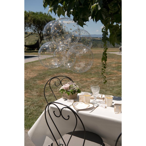 Transparentní balónky jsou ideální dekorací na plesy, svatby, narozeniny ve zlaté barvě a další tématické párty.