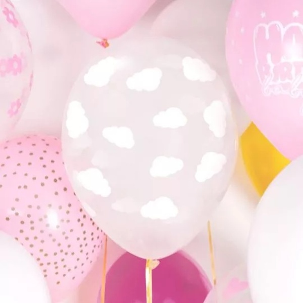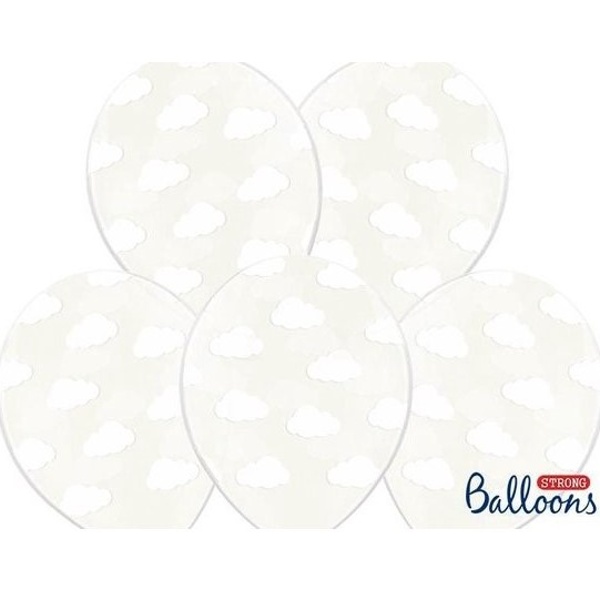 Latexové transparentní balónky s potiskem bílých obláčků