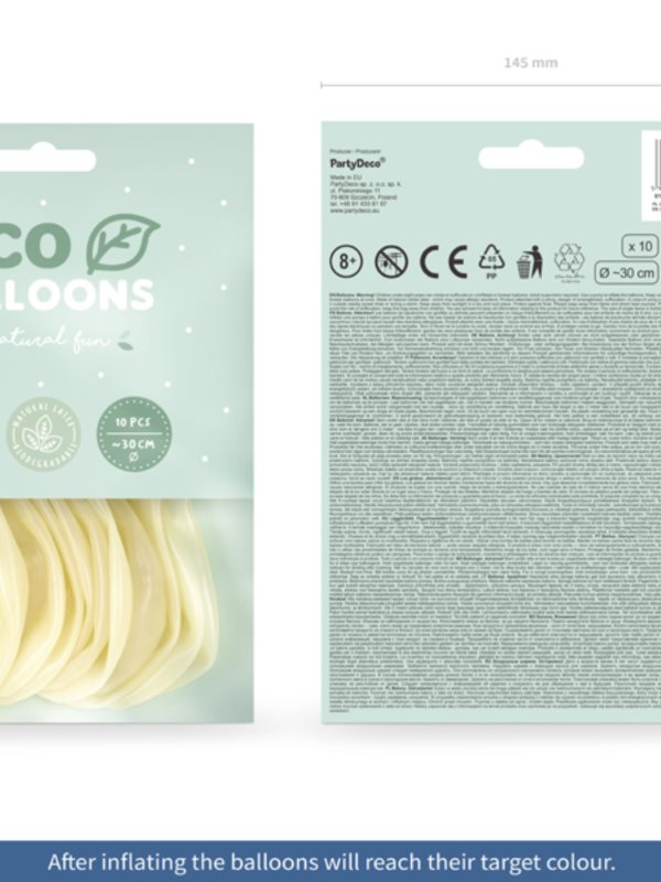 Balónek je v křišťálově čiré barvě, vhodný pro každou příležitost. Tyto ekologické balónky jsou vyrobeny z přírodního latexu, sklizeného z kaučukovníku a jsou biologicky odbouratelné.