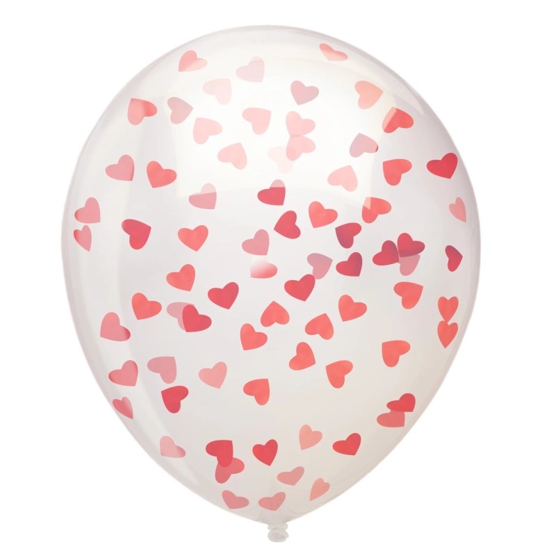 Průhledné latexové balónky s červenými srdíčky promění každou oslavu v romantický zážitek.