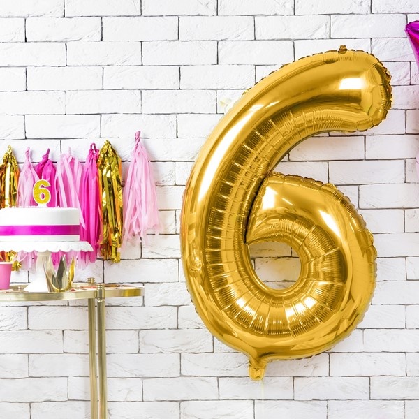 Fóliová zlatá číslice 6 je vhodným doplňkem výroční, novoroční i narozeninové výzdoby.