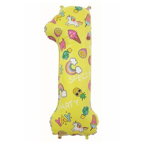 Balonek ve tvaru jedničky potěší malé kluky i holčičky. Sladké oblíbené motivy na žlutém podkladě působí živě a vesele. Jedničku ta snadno zkombinujete s pestrými barevnými doplňky, které se na dětskou oslavu hodí.