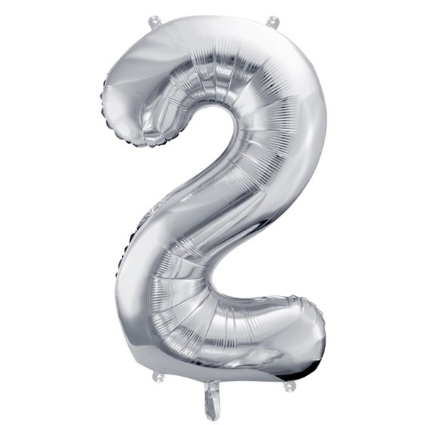 Stříbrná číslice 2 je vhodným doplňkem výroční, novoroční i narozeninové výzdoby.