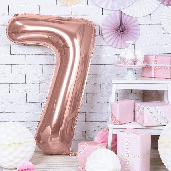 Balónek fóliový ve tvaru čísla 7 růžové zlato
