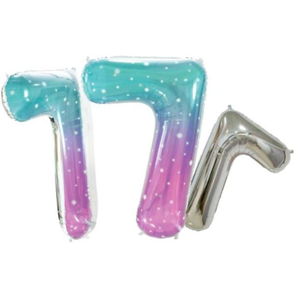 Narozeninový fóliový balónek číslo 7, připomínající svou barvou galaxie, je krásný doplněk výzdoby narozeninové oslavy v tématu Vesmírná párty. Jeho intenzivní a veselé barvy navodí tu pravou atmosféru.
