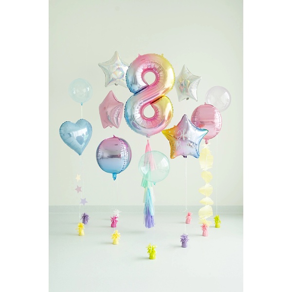 Fóliový balónek číslo 8 v pastelové duhové barvě je ideální volbou pro každou narozeninovou oslavu nebo výročí. tematickou párty. Díky jemným barvám se stane nepřehlédnutelnou dekorací, která dodá slavnostní atmosféře jedinečný kouzelný nádech.