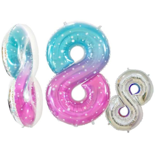 Narozeninový fóliový balónek číslo 8, připomínající svou barvou galaxie, je krásný doplněk výzdoby narozeninové oslavy v tématu Vesmírná párty. Jeho intenzivní a veselé barvy navodí tu pravou atmosféru.