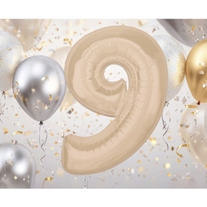 Fóliový balónek číslo 9 v matné barvě latté
