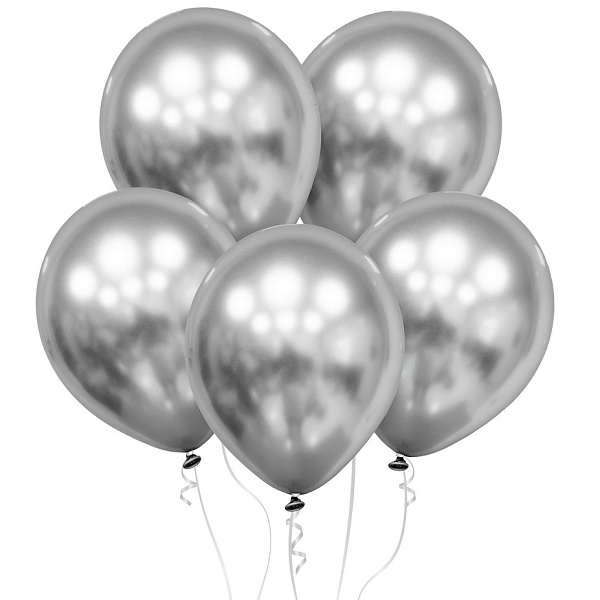 Latexové balónky v chromové stříbrné barvě mají krásný kovový lesk a působí velmi elegantním dojmem.