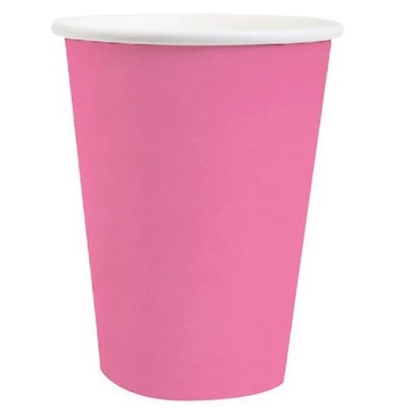 Namixujte si svůj oblíbený nápoj do těchto tmavě růžových papírových pohárků.
