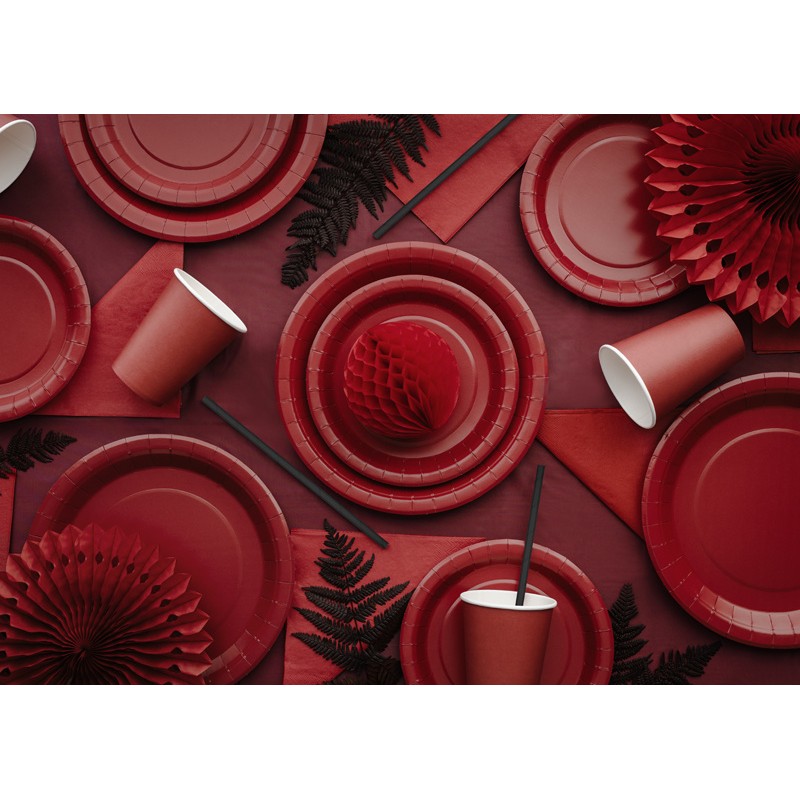 Sada jednobarevných papírových jednorázových kelímků v tmavě červené barvě je ideální pro pikniky, narozeninové oslavy, vánoce a spoustu dalších příležitostí.