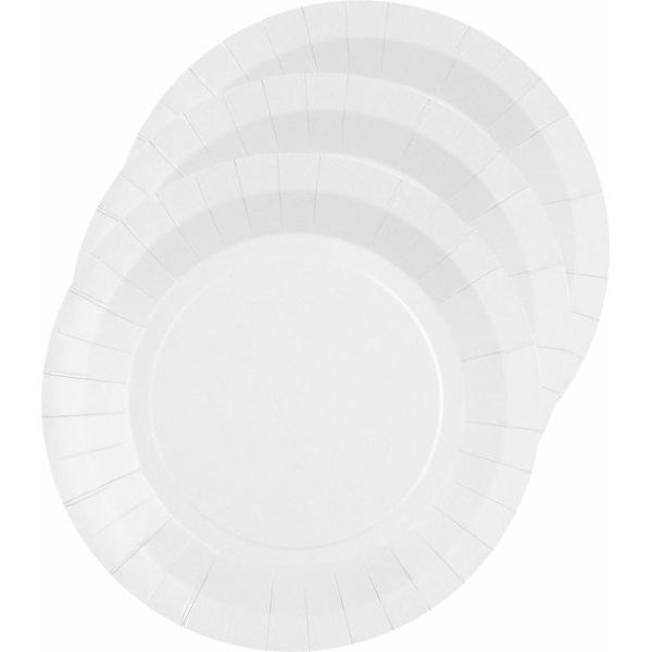 Jednorázové papírové talíře z pevného kartonu v barvě bílé.