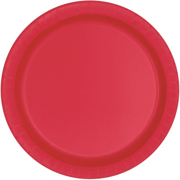 Červené kulaté talíře mají průměr 22 cm