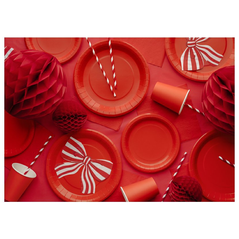 Papírové kulaté talíře v červené barvě dodají vaší oslavě výrazný a slavnostní nádech.