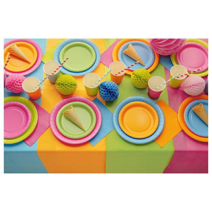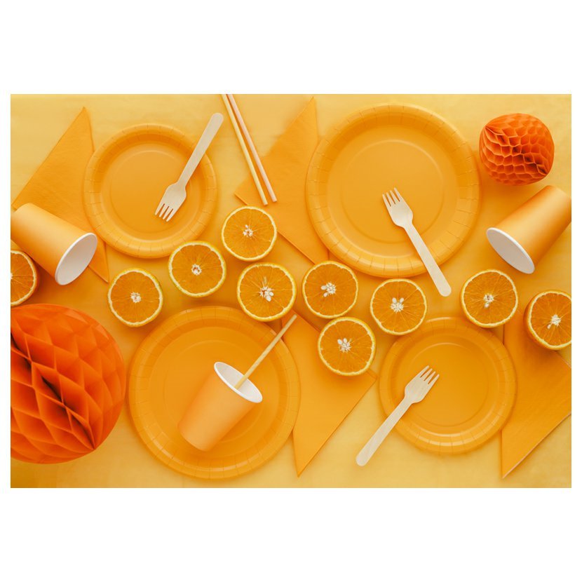 Sada klasických kulatých oranžových talířů je ideální pro pikniky, narozeninové oslavy a další jiné příležitosti.