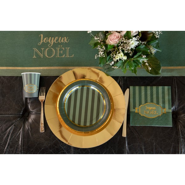 Papírové elegantní talíře ve dvou odstínech zelené barvy s proužky a zlatým okrajem využijete na výzdobu každé slavnostní tabule.