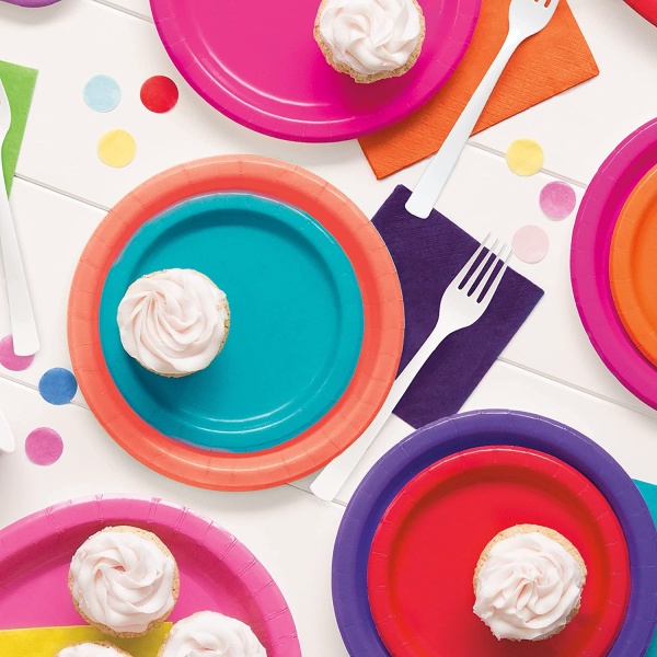 Nemusíte se trápit s umývaním nádobí a navíc můžete tyto talířky barevně sladit s další výzdobou. Jsou ideální pro podávání dortů nebo předkrmů na piknik, zahradní párty, letní grilování
